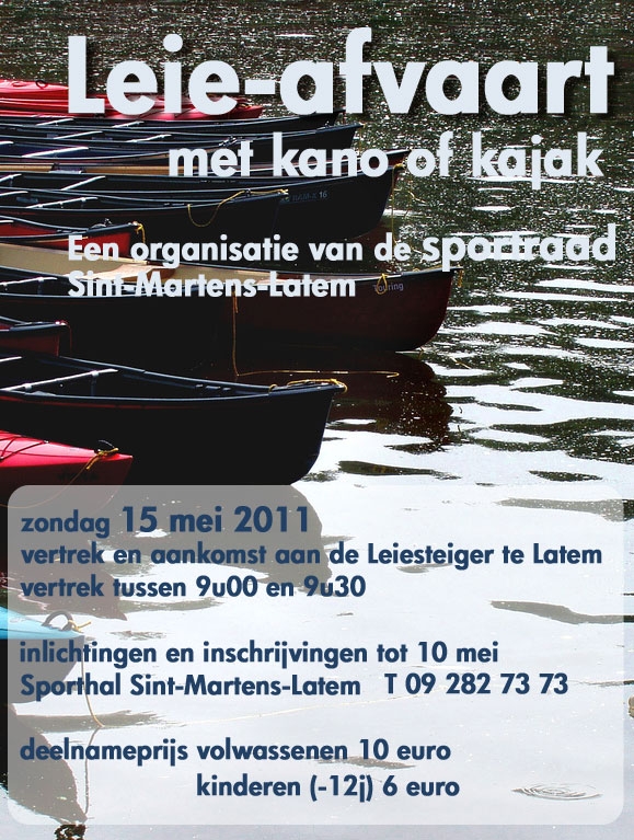 Op zondag 15 mei a.s. om 9 uur organiseert de gemeentelijke sportraad de ‘Afvaart van de Leie’ per kajak of kano.