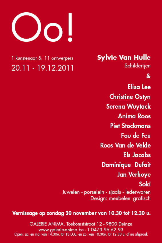 Op afspraak van 20.12.2011 tot 30.01.2012.ANIMA opent graag op een moment dat het u past.