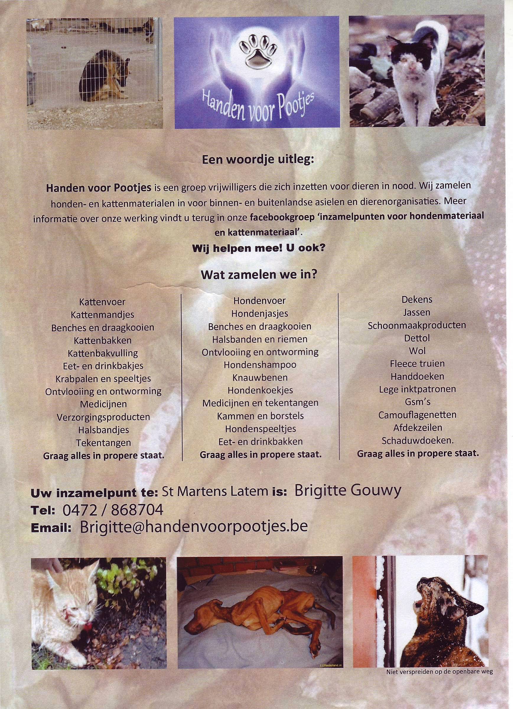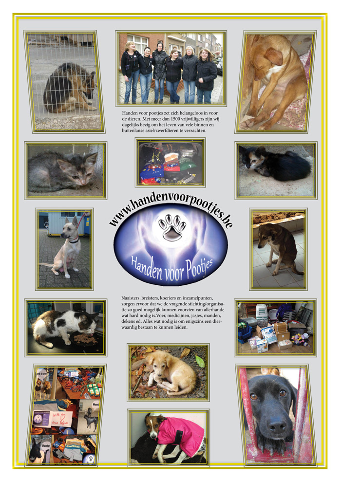 Opgestart in Nederland heeft de voor dierenwelzijn ijverende ‘vzw Handenvoorpootjes ‘ook in België weerklank bij de talloze dierenliefhebbers.