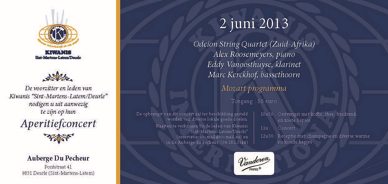 Op 2 Juni 2013 organiseert Kiwanis Sint-Martens-Latem/Deurle een aperitiefconcert.