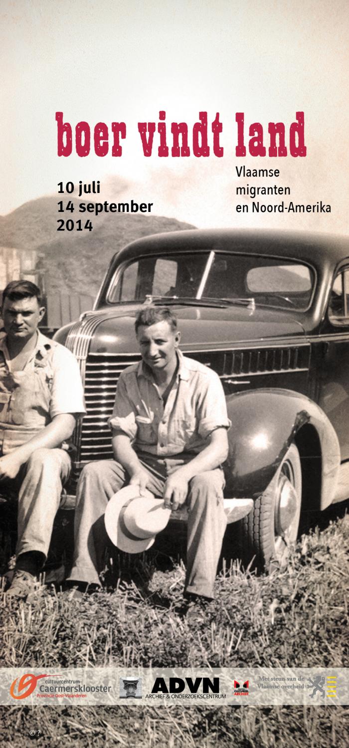 Van 10 juli t.e.m. 14 september 2014 loopt in het Provinciaal Cultuurcentrum Caermersklooster in Gent de tentoonstelling ‘Boer vindt land. Vlaamse migranten en Noord-Amerika’.