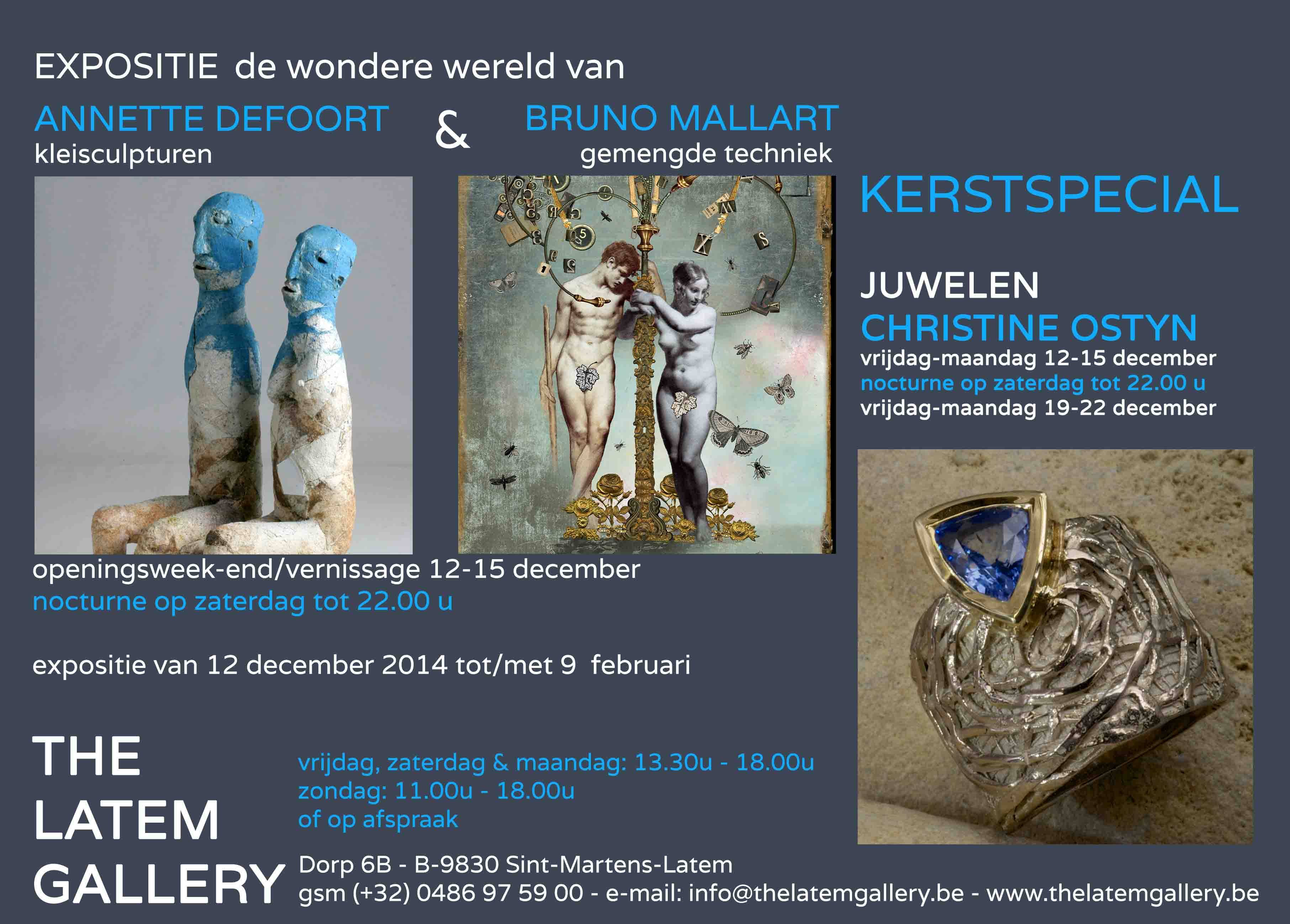 04/12/2014 door A-F Haelemeersch Sint-Martens-Latem : Nieuw in The Latem Gallery ‘De wondere wereld van Annette Defoort & Bruno Mallart’ van 12 december tot/met 9 februari 2015. Tijdens de weekends van 12-15 en van 19-22 december 2014 de originele juwelencreaties van Christine Ostyn. Dit delen: Klik om te delen op Facebook (Opent in een nieuw venster) Facebook Klik om te delen op X (Opent in een nieuw venster) X Vind-ik-leuk Aan het laden...