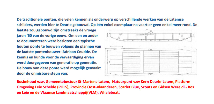Het traditionele veerpont, bekend uit de vele schilderijen van de Latemse Leieschilders, is zowat volledig uit beeld verdwenen. In het voorjaar van 2013 groeide het idee om een dergelijk pont na te bouwen.