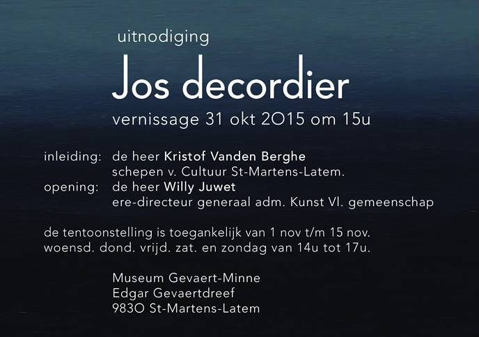 In 1975 exposeerde Jos Decordier, voor de eerste maal, in de ‘Latemse Galerij’ naast de toen legendarische peuzelkroeg ‘De Klokkeput’.