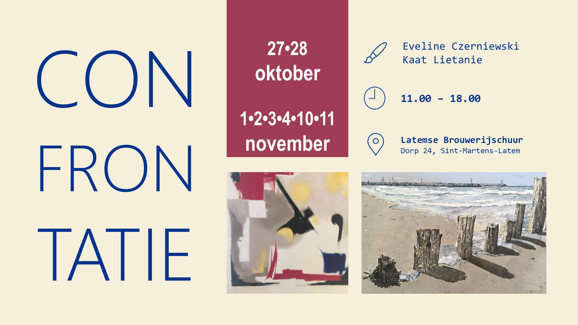 43698408_715462645496749_128521789616685056_o Gepubliceerd 13/10/2018 at 1920 × 1080 in Eveline Czerniewski & Kaat Lietanie exposeren in Latemse Brouwerijschuur ← Vorige