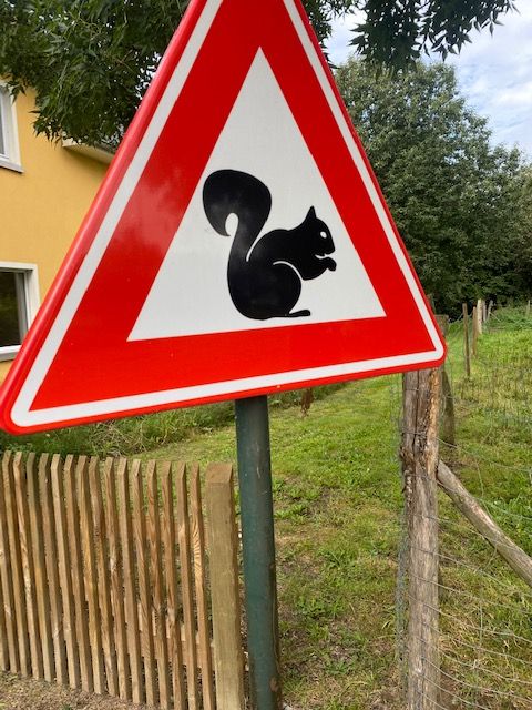 Worden eekhoorns ook gevaccineerd ? Stelde ik me de vraag toen dit uitdagend verkeersbord me deed ‘ontkwispelen.’
