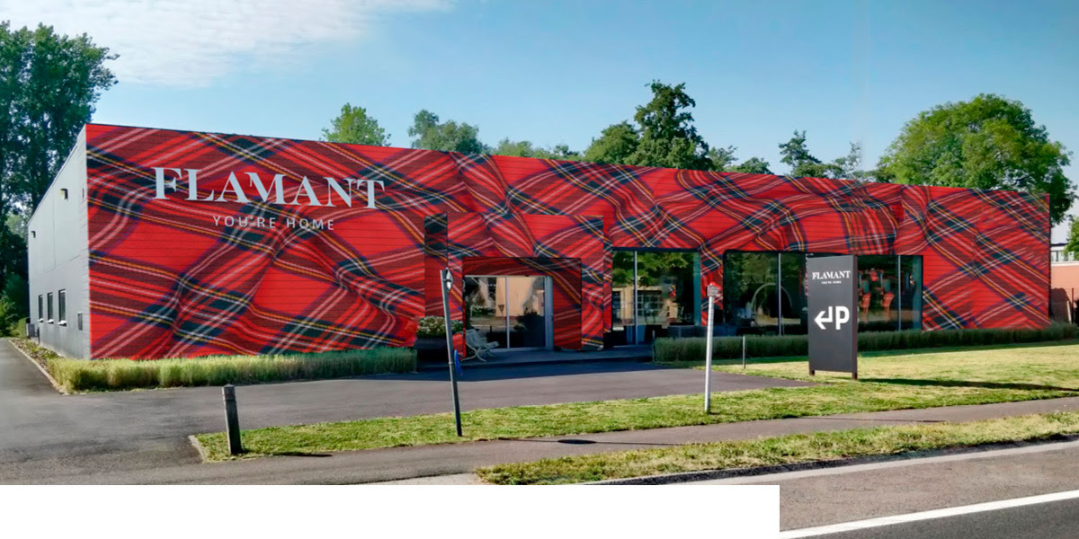 Je kan onmogelijk beweren dat de vernieuwde Flamant vestiging geen frisheid geeft aan de Latemse ‘industrieweg, de Kortrijkse Steenweg. Er is alles aan gedaan om de winkelketen kleur te geven en met een heus landmerk de vroegere als ‘chaussée d’amour’ geboekstaafde hoofdweg, ook als bouwwerk , weer heel wat aanzien te geven!